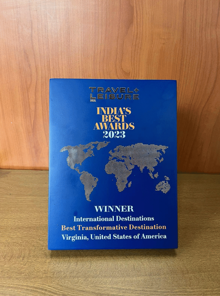 Virginia was awarded as the Best Transformative Destination at Travel and Leisures’s India’s Best Awards 2023