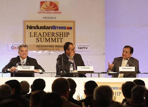 session titled “Public-Private Partnerships: Why They Fail and How to Make Them Work” at the Hindustan Times Leadership Summit on November 21, 2014, in New Delhi. The session was chaired by R. Sukumar, Editor of Mint, and Rana Kapoor, Founder and CEO of Yes Bank.